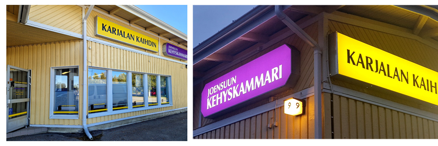 Alla olevat liikekeskuksien valomainokset saivat tasaisen valon vaihdettuamme ne LED-tekniikalle. Käytämme LED-moduuleja, joilla saa tasaisemman ja varmemmin toimivan valon pidemmäksi aikaa. Annamme takuun myös näille töille.