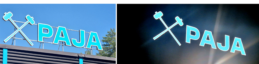 CrossFit Paja Kuurnankadulla varustettiin kahdella irtokirjain kattomainoksella. Kattoasennuksissa emme tee reikiä kattoon vaan mainokset kiinnitetään tukevalla pinta-asennuksella. Tarjoamme / valmistamme tarvittaessa myös asennustelineet.
