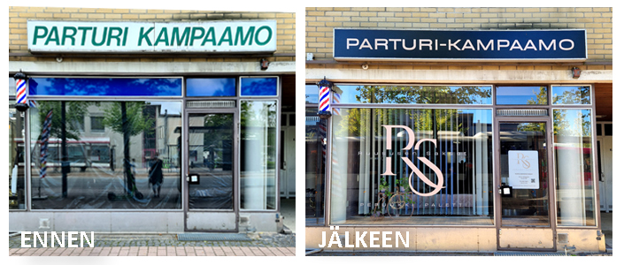Vanha parturi-kampaamoliike sai uuden yrittäjän myötä uuden ilmeen kauttamme. Muutos on huomattava. Onnea uudelle yrittäjälle!